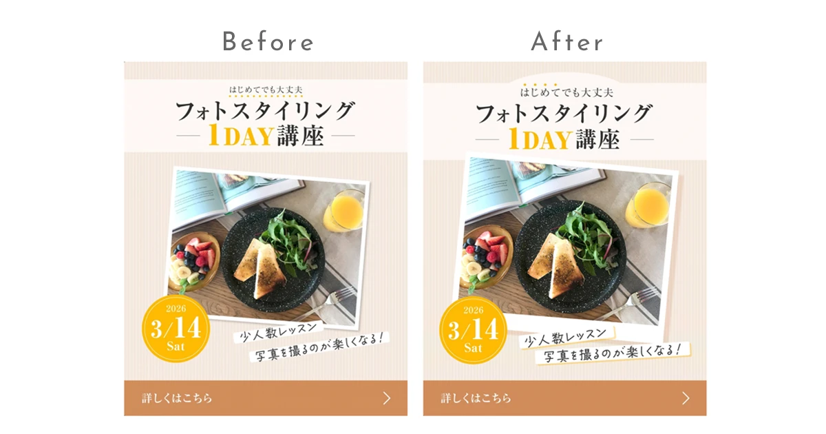 バナー添削|ビフォーアフター【はじめてのフォトスタイリングレッスン】