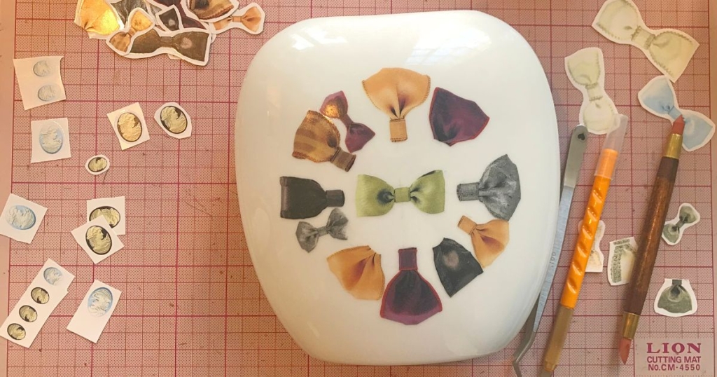 LESSON7単色転写紙のベタ貼り1~曲面・球面~複数の白磁パーツへ絵柄を合わせる貼り方|レッスン11日目