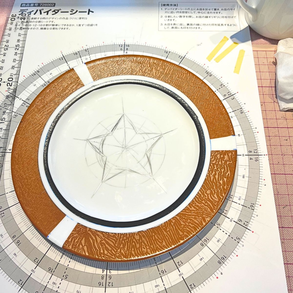 キレイな五角形にするため、ディバイダーシートを使い印をつけていきます。