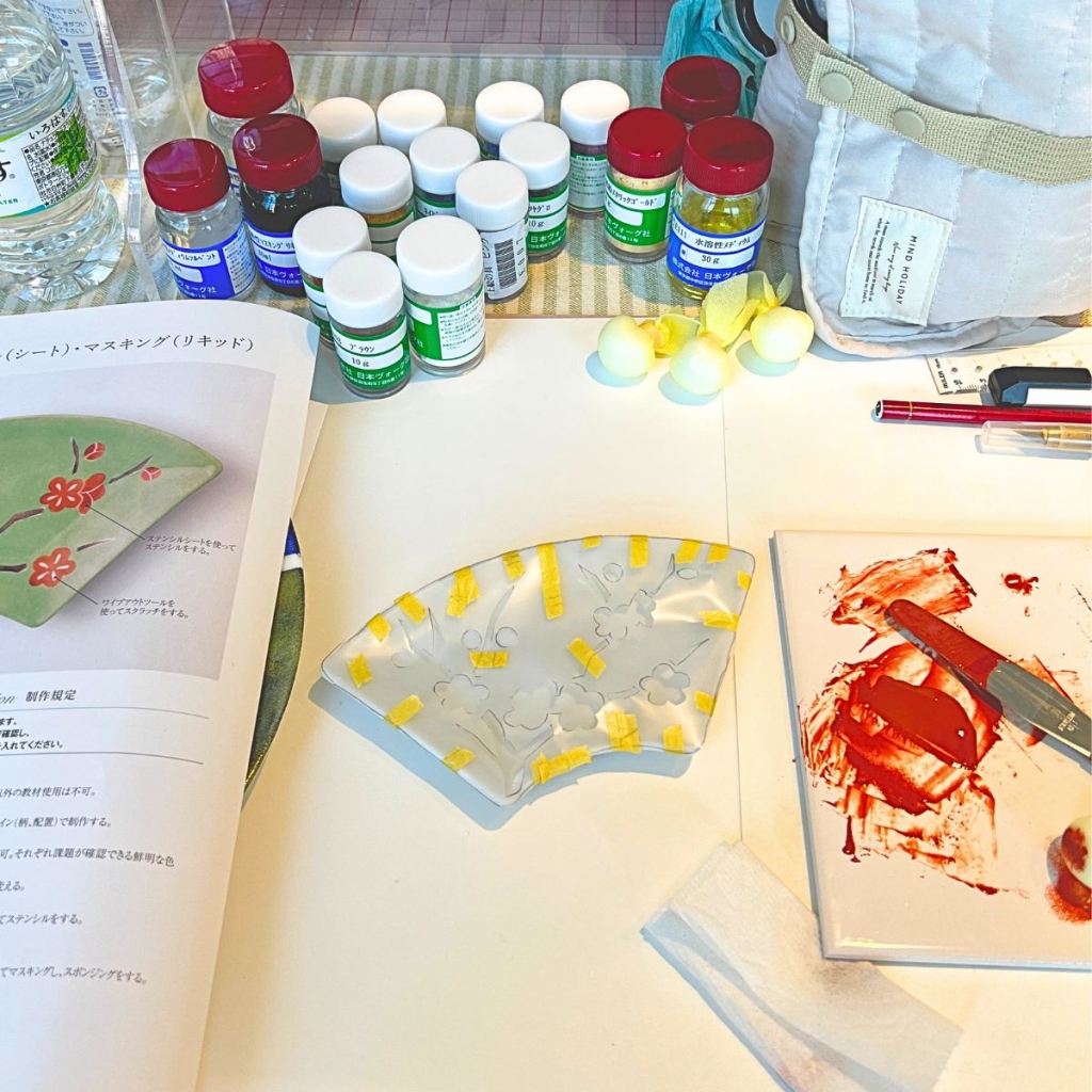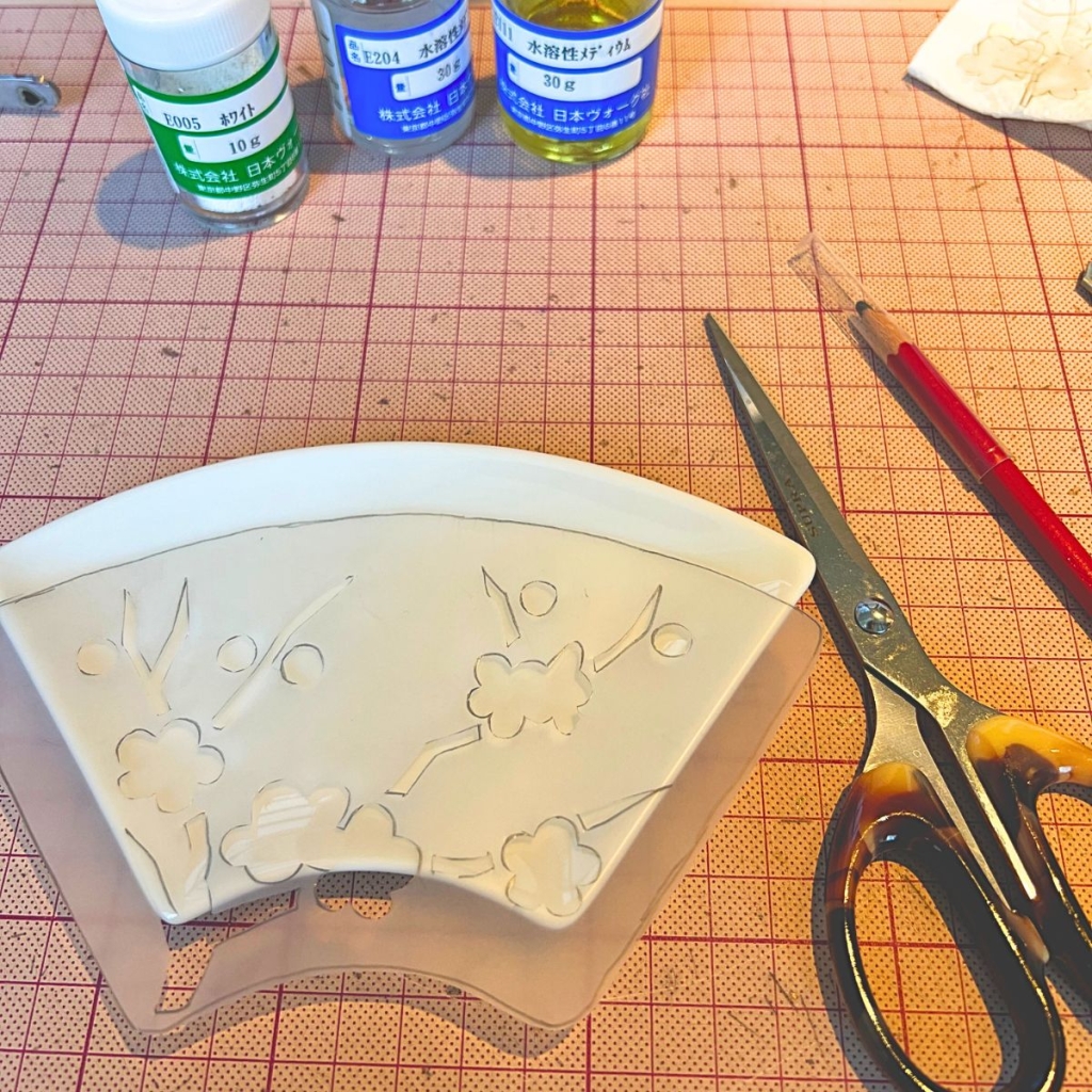 ステンシルシートが、柔らかいプラ板のような感じ?なので、曲線のカットが難しかった記憶。