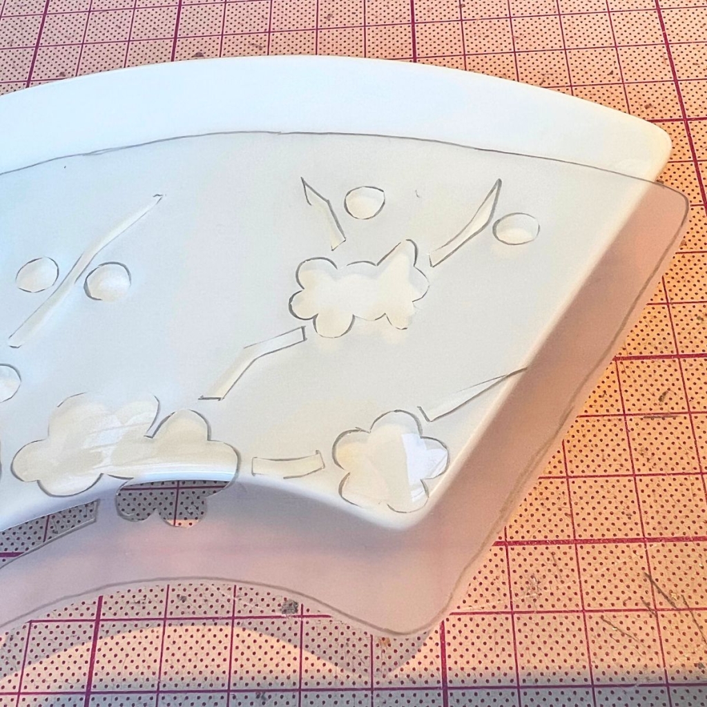 ステンシルシートに見本のイラストを写し、切り抜きます。