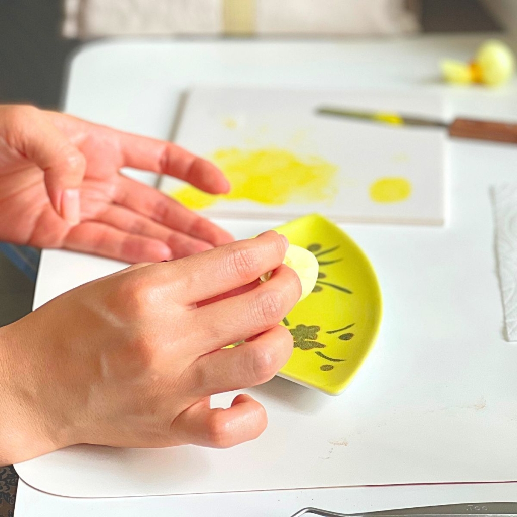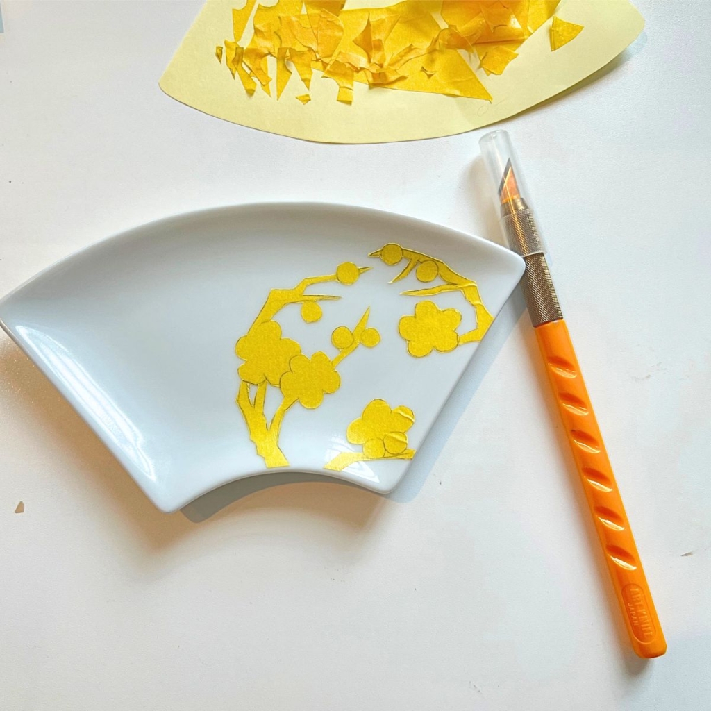 最後、マスキングをペラっと剥がし、焼成してもらったら完成です。